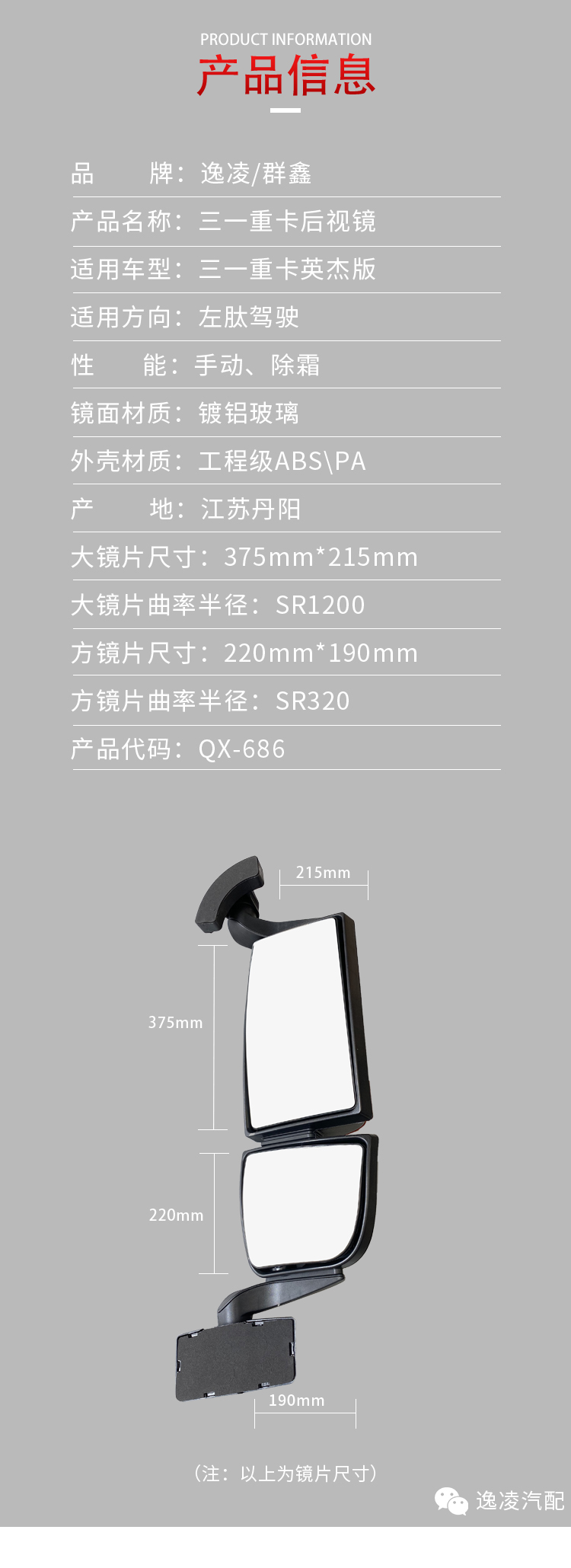 新品发布:QX686 三一英杰后视镜