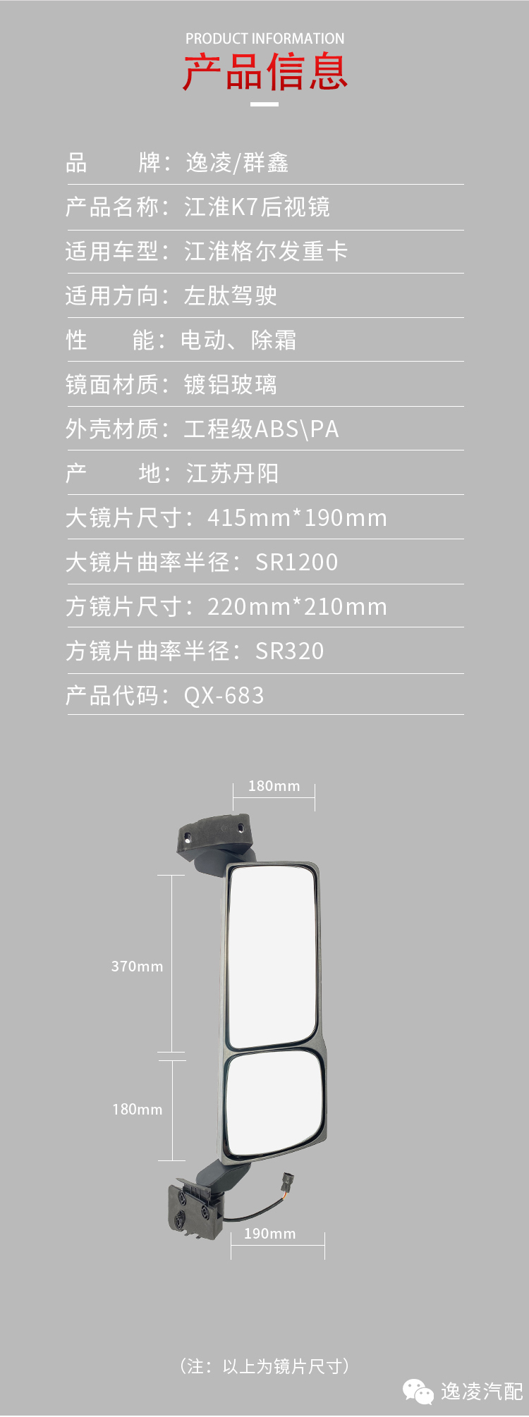 新品发布QX-683 江淮K7后视镜
