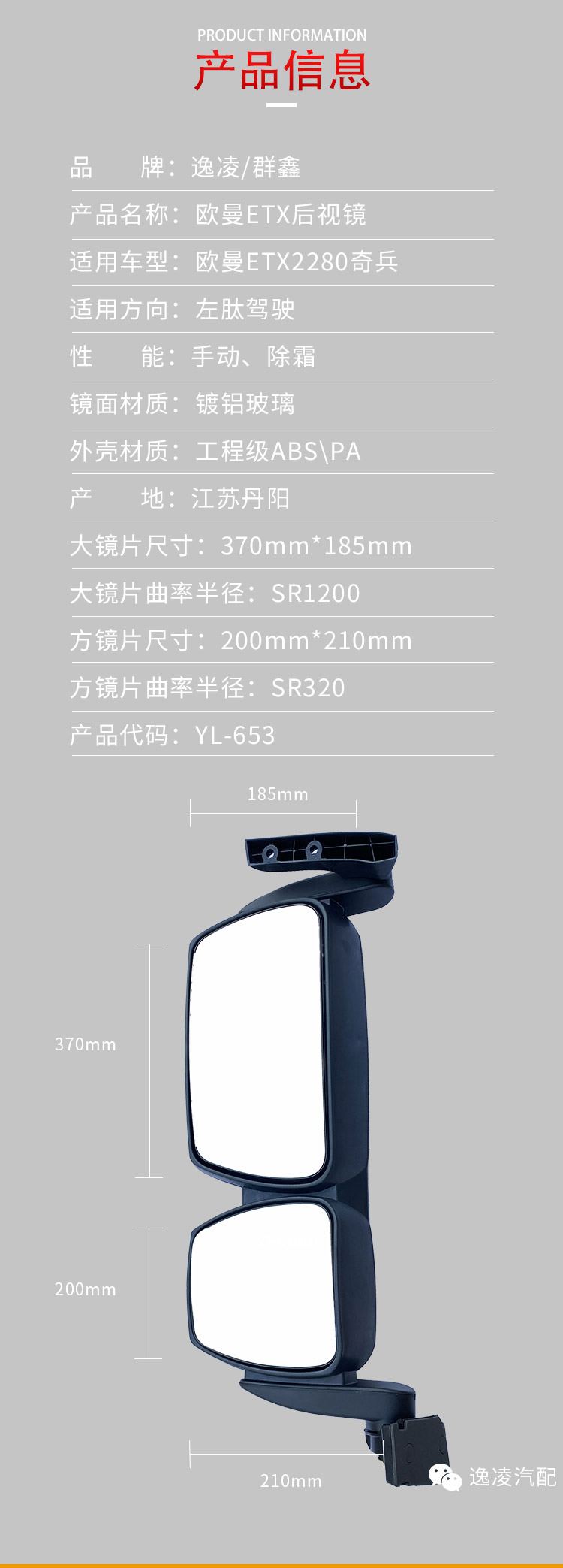 欧曼ETX连体后视镜