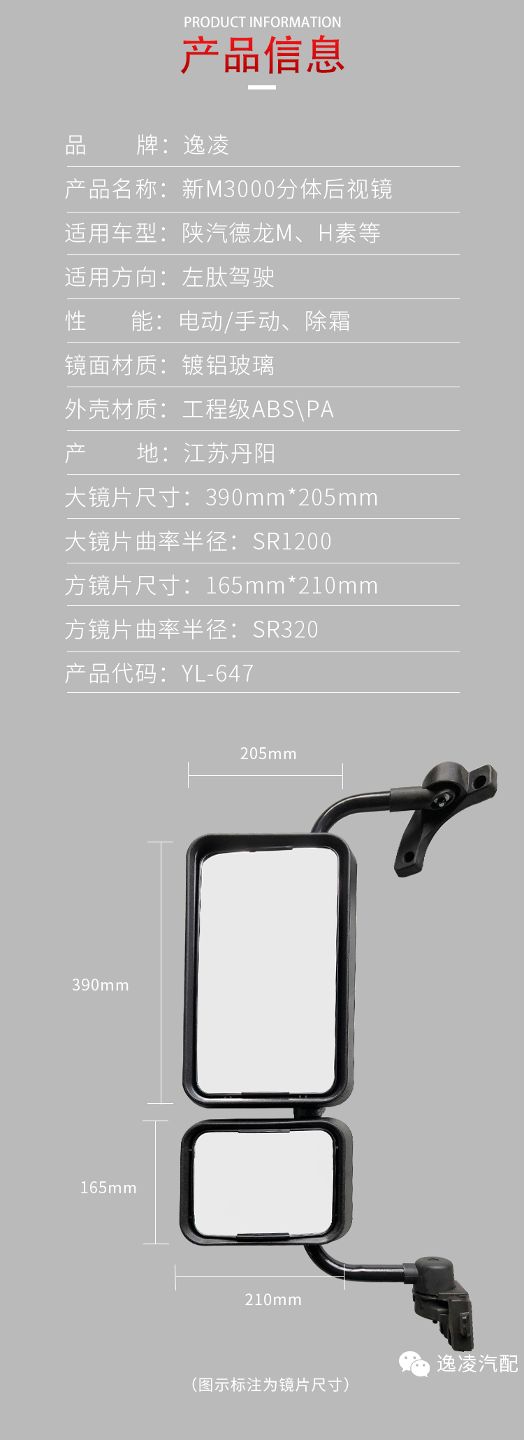 德龙新M3000分体后视镜